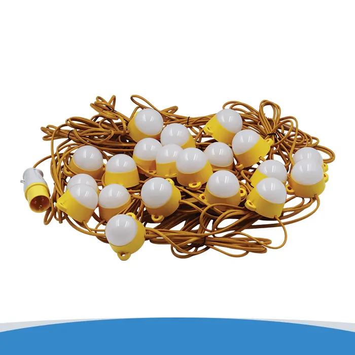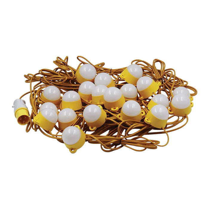Our connectable 110V festoon kit range includes 12m, 22m and 50m lengths. Each kit includes a male and female connector to daisy chain, and a 1m starter cable, allowing you to link them in any combination up to 200m. This makes on-site extension quick and hassle-free.