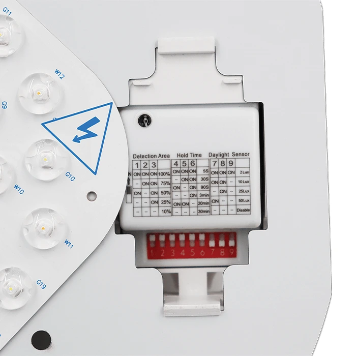 • Sensor version; on/off microwave, with adjustable time, lux and detection area