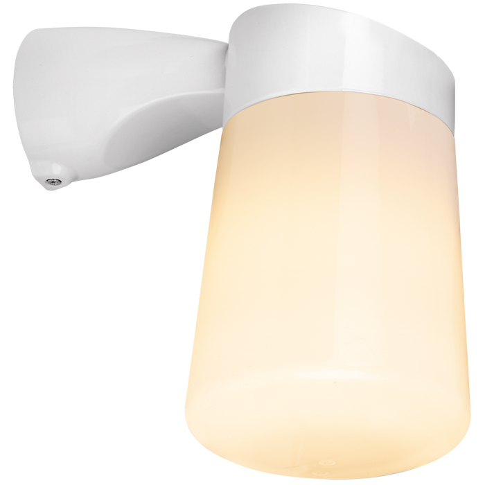 The well glass external wall fitting is available in black and white with a tough polycarbonate diffuser to give a similar style to a tradition glass lantern fixture. The fixture comes complete with an LED E27 lamp for ease of maintenance and an additional corner bracket accessory for corner wall positions to save on installing fixtures either side of the wall